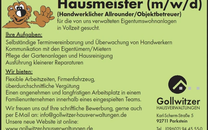 Dafür steht das Unternehmen Gollwitzer seit 1988. Hausverwaltung ist Vertrauenssache. Wie in kaum einer anderen Sparte ist es bei der Auswahl des Verwalters absolut wichtig zu wissen, mit wem man hier „zu tun“ hat, auf wen man sich verlassen kann. Wem man „sein Geld anvertraut“!